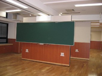 非構造壁を抜いてパーテーション方式にやり変え、2教室通しの広いスペースが確保できるようになった。(赤い部分は耐震補強)