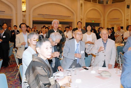 福引きは賞品数を絞りこみ、予定した時間内で、終わりました。千 玄室会長の色紙は元副会長の大石 純氏が引き当てられました。恩師紹介は恒例の迫田恒夫先生(昭和24年卒)に行っていただきました。今回はご来賓として現校長の田岡文夫先生、副校長の多田光利先生、三光会からは安田祐治先生、畑井多津子先生、花坂雅夫先生、今西幹郎先生、渡辺武野先生、田中 収先生、栗山正則先生、藤本榮樹先生、村岡弓子先生、倉中増夫先生、岩渕信明先生、木下由利子先生、島田尚夫先生(母校への着任順)の13名の先生にご出席いただきました。懐かしい先生方にお会いできて、大変嬉しく思いました。