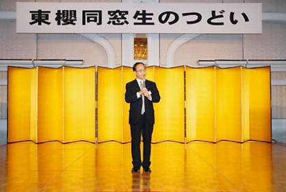 楽しい時間もあっという間に過ぎ、校歌斉唱、次期実行委員への引継ぎがあって、午後8時過ぎに「東櫻同窓生のつどい」は終了しました。準備は大変でしたが、みなさまの楽しそうなお顔を拝見し、また「ご苦労様」の一言を多くの方にかけていただき、幸せに感じました。みなさまが楽しいひと時を過ごしていただいておれば幸いです。