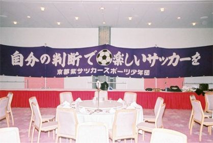 祝賀会には、現附属京都小学校副校長の多田光利先生をはじめ、これまで京都紫FCの活動を支えて頂いた連盟、各少年団の代表、少年団OB、現役選手、後援会、ら総勢およそ230名の方々にご出席を得、盛大に祝賀会を執り行うことが出来ました。